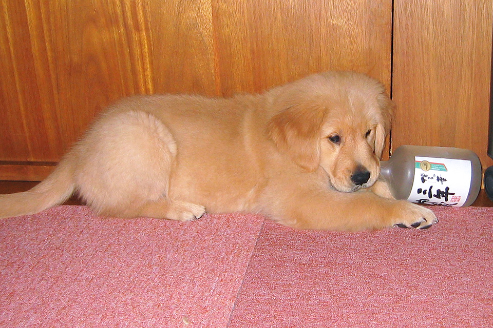 それからキッチンの框で見つけた焼酎の空き瓶をゴロゴロあぐあぐ,