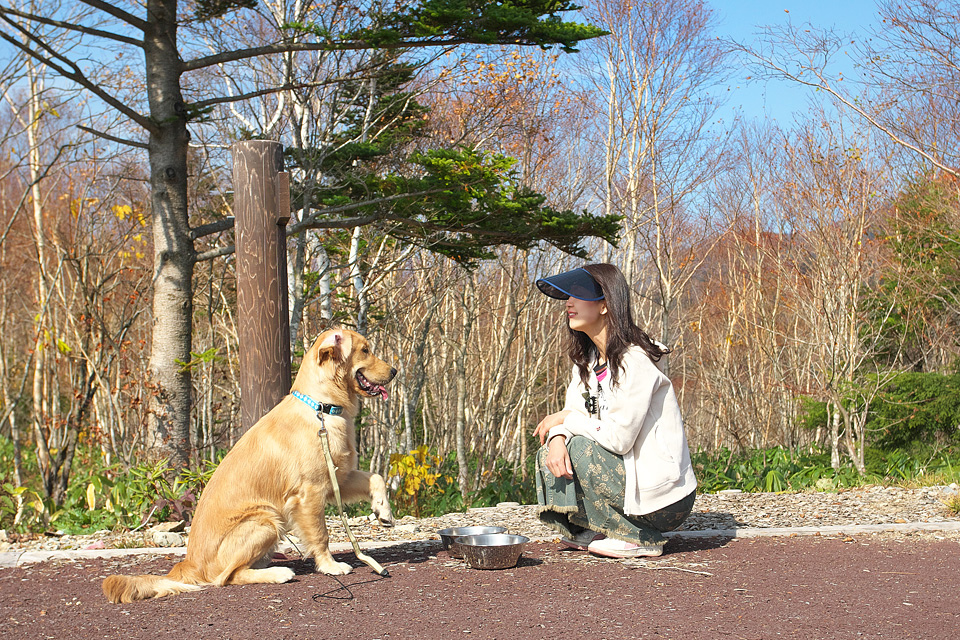 リードを放して,3人だけで過ごせる場所を探して遊びます。