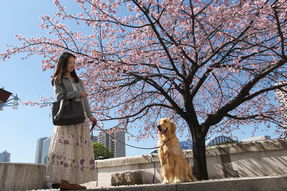 永代橋の大寒桜