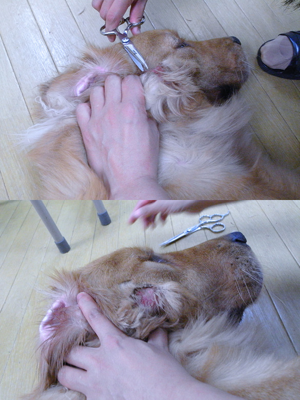 丁寧に周りの毛を切って