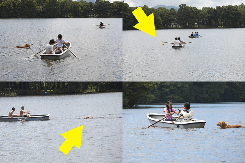休憩時間は子どもたちのボートを追ってどこまでもどこまでも泳いていました。