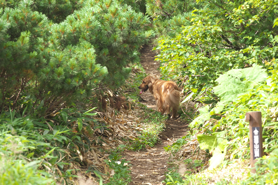 山ではいちばん先頭を歩きたい性格です。 でももし他の人の気配がすれば呼び戻してリードにつなぐので10m以上離れてはいけないルールになっています。 ほら,楽しさに興奮しすぎて「ちょっと行き過ぎたかな」と振り返ってます。 (藻琴山登山道にて)