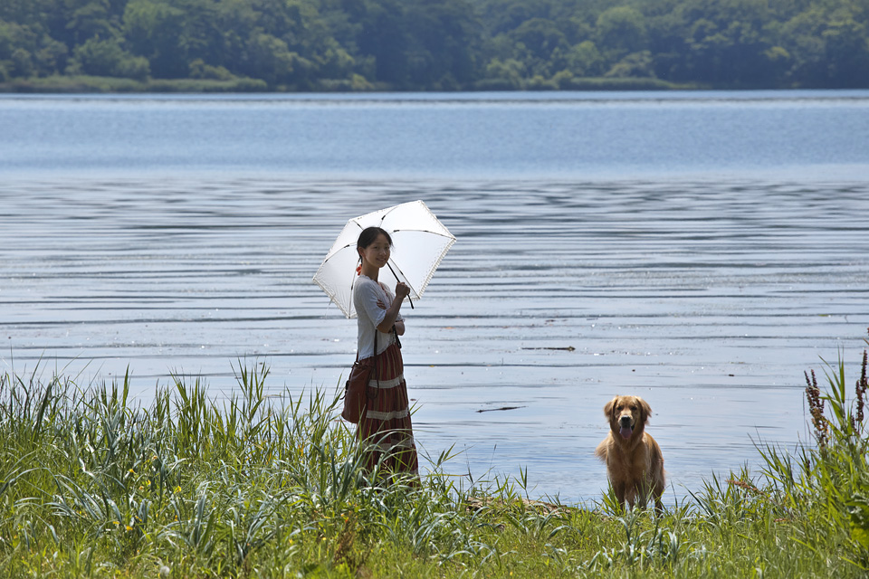 (網走湖にて妻と息子と夏の太陽と)