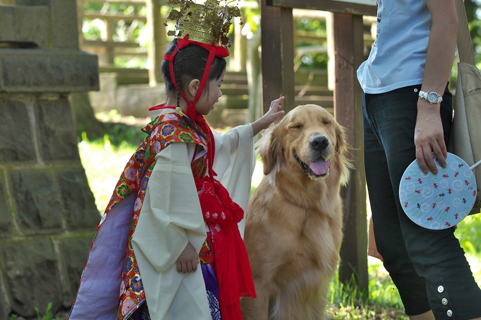 小さな巫女とタロー(根室 金刀比羅神社例大祭にて)