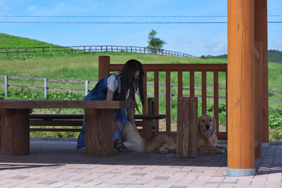ママはボクのしっぽのていれをしています。(日高町にて)