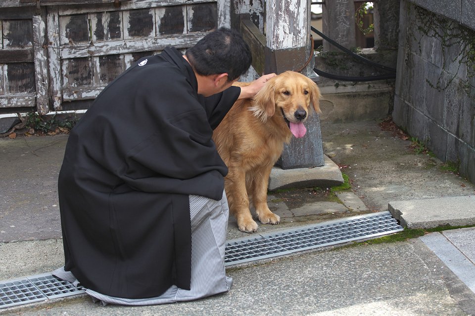 戻ってみるとタローがお寺の人たちや観光客の人気者になっていて演奏会より人を集めていました。