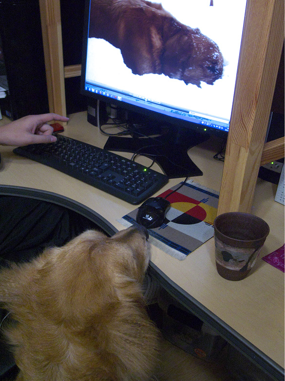 雪の中ではしゃぐ自分の動画を鑑賞中。