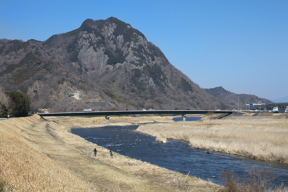 大仁 狩野川沿い,城山に冬日が当たってキレイでした。