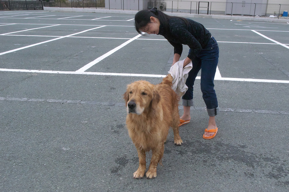 たっぷり2杯で潮を落としたらタオルドライ。