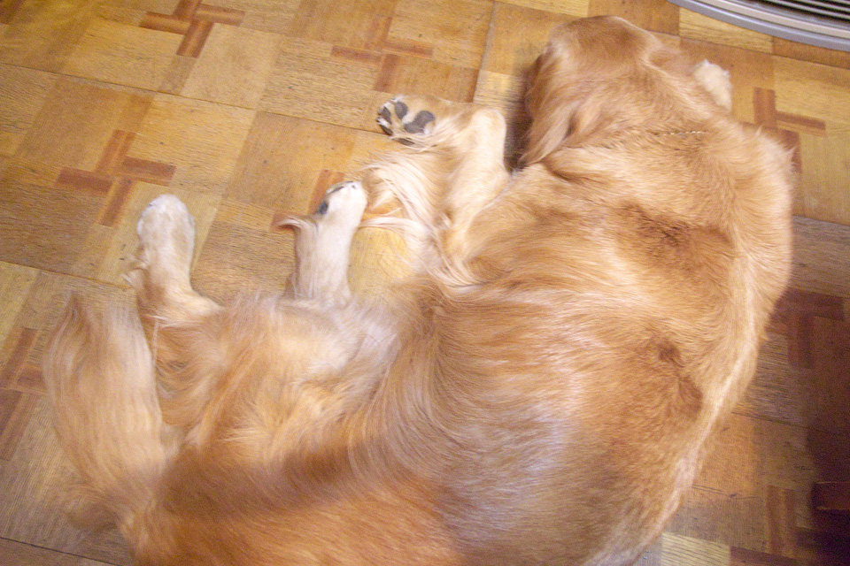 東海地震の余震時のタロー。こりゃ、もう留守番はムリだな。