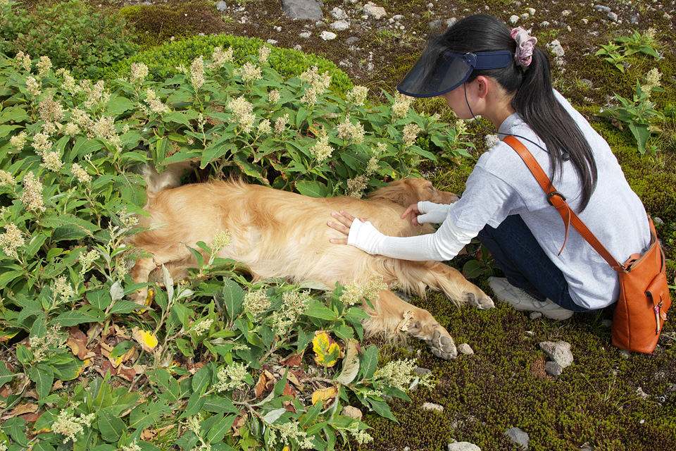 コースを外れた高山植物の上に導くとばったり倒れてしまいました。