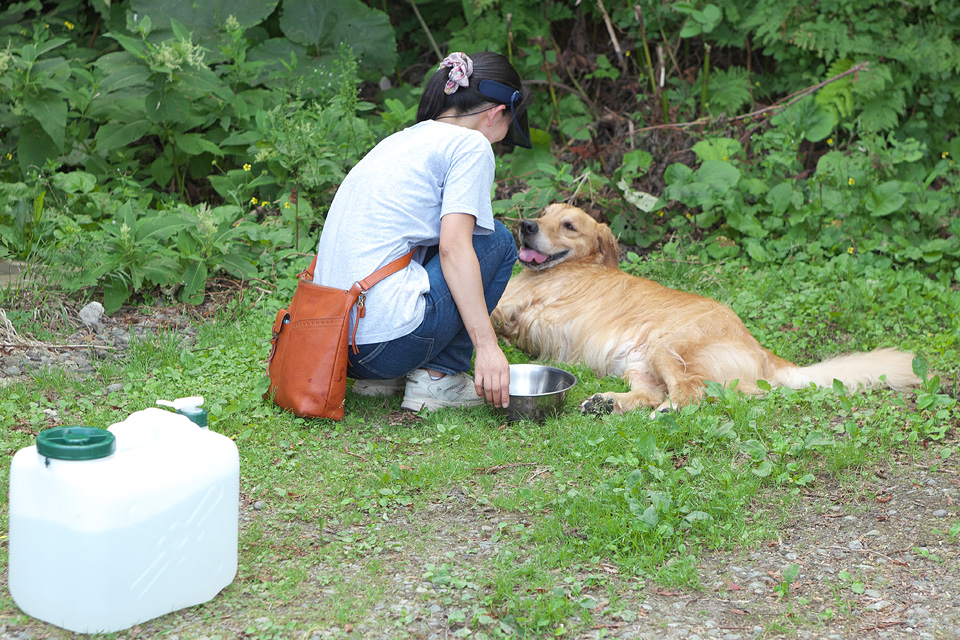 それ!首筋からシャワー!タローが笑いました。よかった。