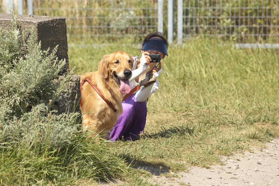 ハマナスを撮っている間に先に進み,ボクを脅かそうと二人で物陰に隠れていました。