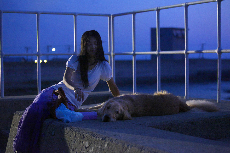 コンクリートの部屋で夕涼み。まだ暑くて部屋には入れそうにありません。