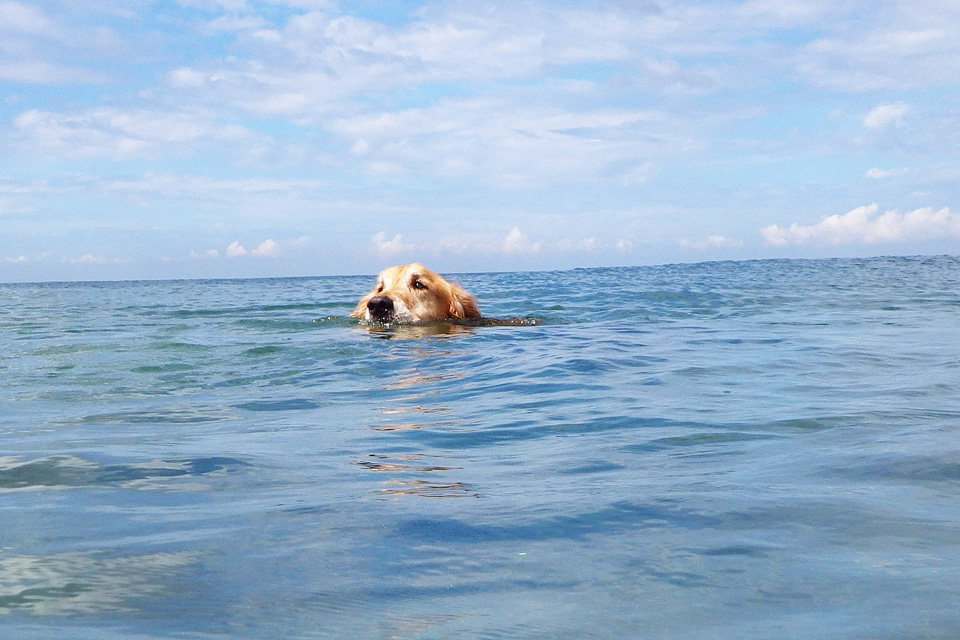 防水のコンパクトデジカメを中古で買いました。タローの犬かきを水中から撮るためです。
