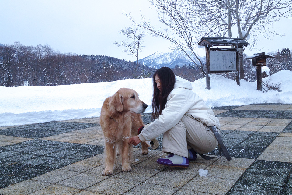 そのまま車に乗ると雪が融けて敷物を濡らし風邪をひかせてしまうので手で一玉一玉取ってやらなければなりません。
