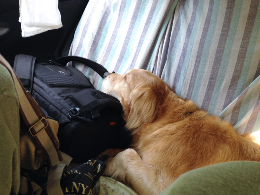 をい!タロー。パパの大事なロープロのカメラバッグにアゴ載せすんなよ