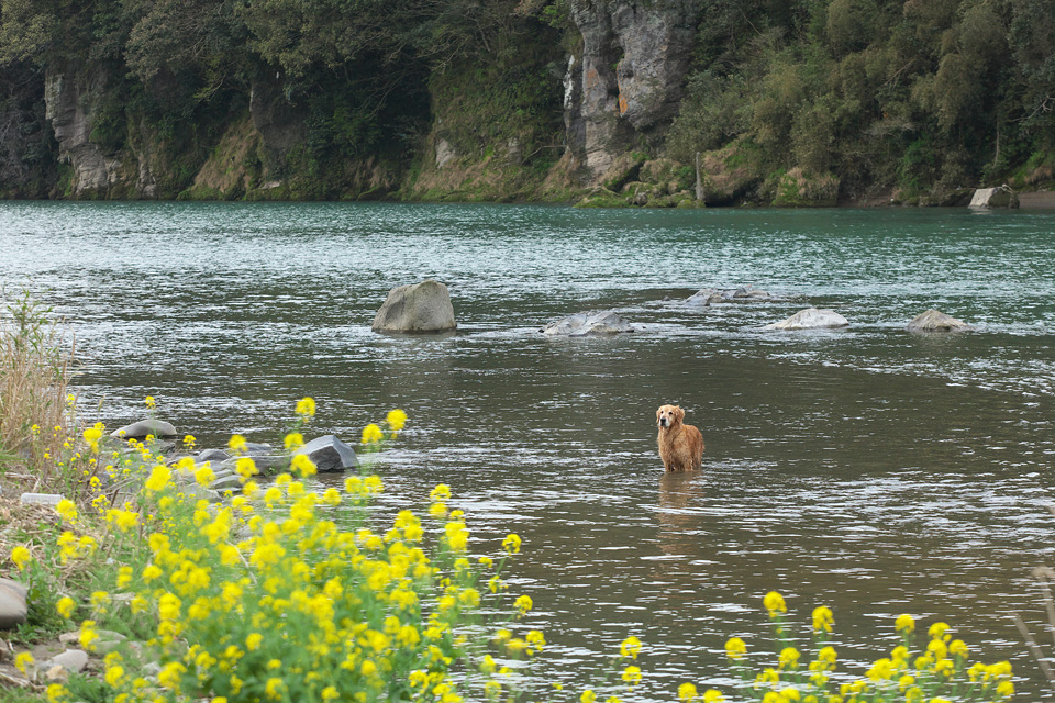 あはっあはっ。ちょっとママと川で遊んでてくれ。パパはSL撮ってくるから。