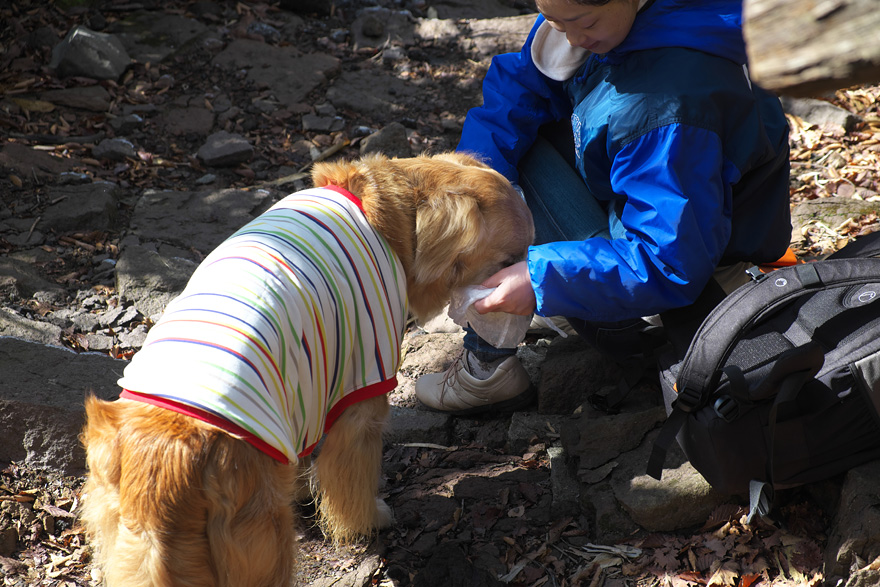 携帯容器も忘れたためにレジ袋に水を入れてタローに飲ませています。