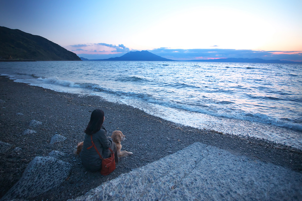 たろーさぁ,約束の桜島ごわす。日暮れに間に合いもした。