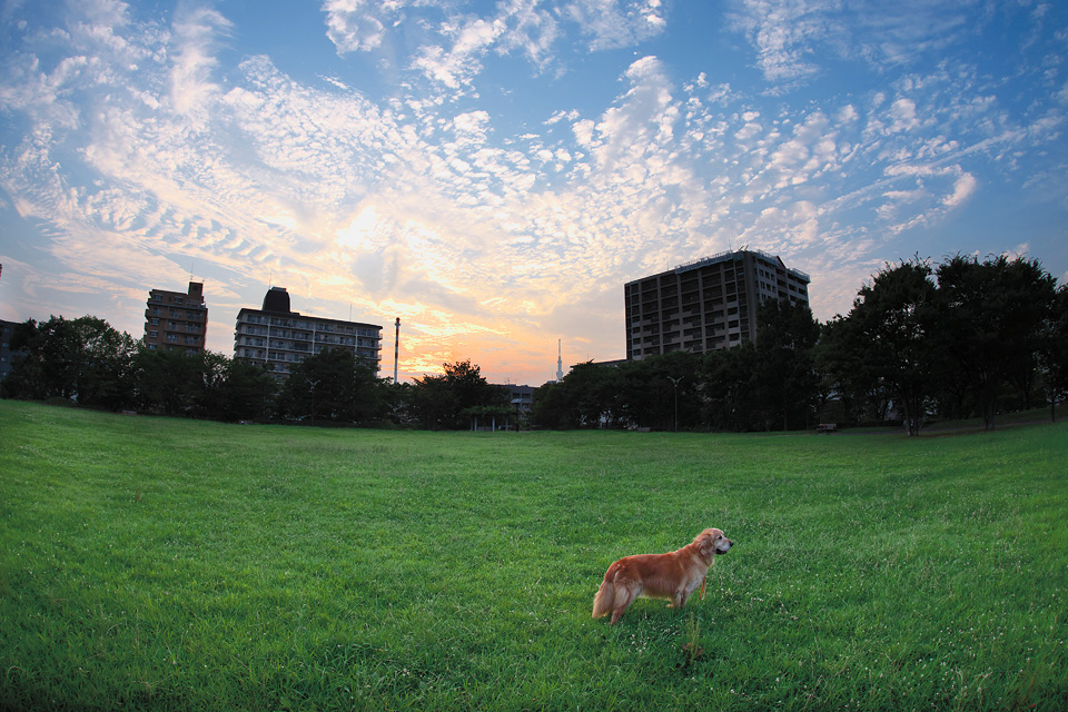真夏の夕べ…仕事の合間の散歩中に見上げた空