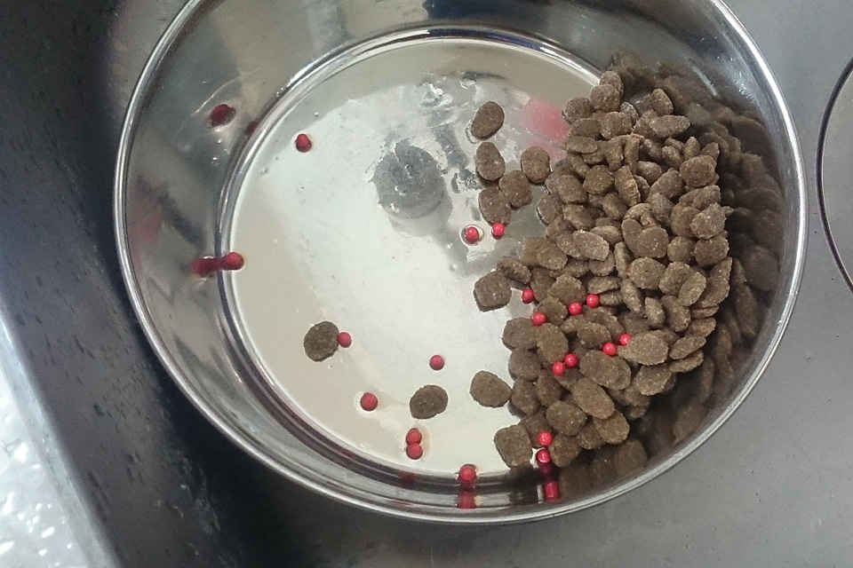 だいぶよくなりました。薬は赤玉に替え,餌を1/3くらい与えます。