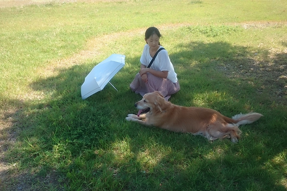 「何もないところだけど,パパがうれしそうで,お花はキレイだし,楽しかったね,タロー」