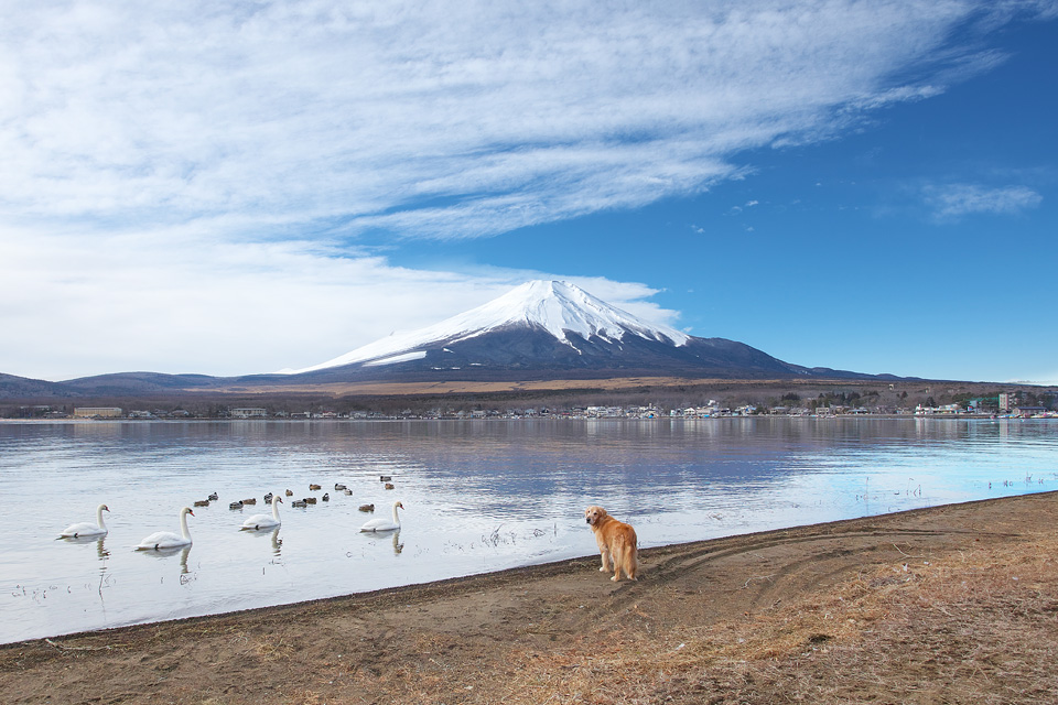白鳥とタイミングを合わせてパチリ♪