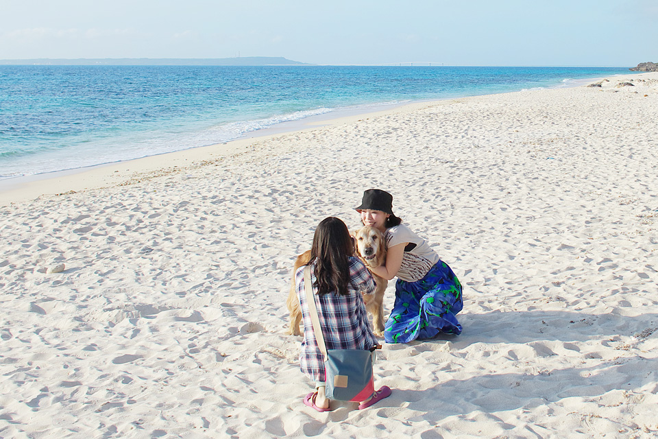 平良のホテルからレンタカーでたどり着いたあっぱれな女子たちに乞われ,記念写真に収まっています。
