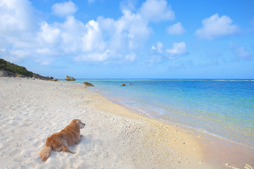 タローはもう長くは泳げないので,ボクらがシュノーケリングしている間,浜で待っていたのですが