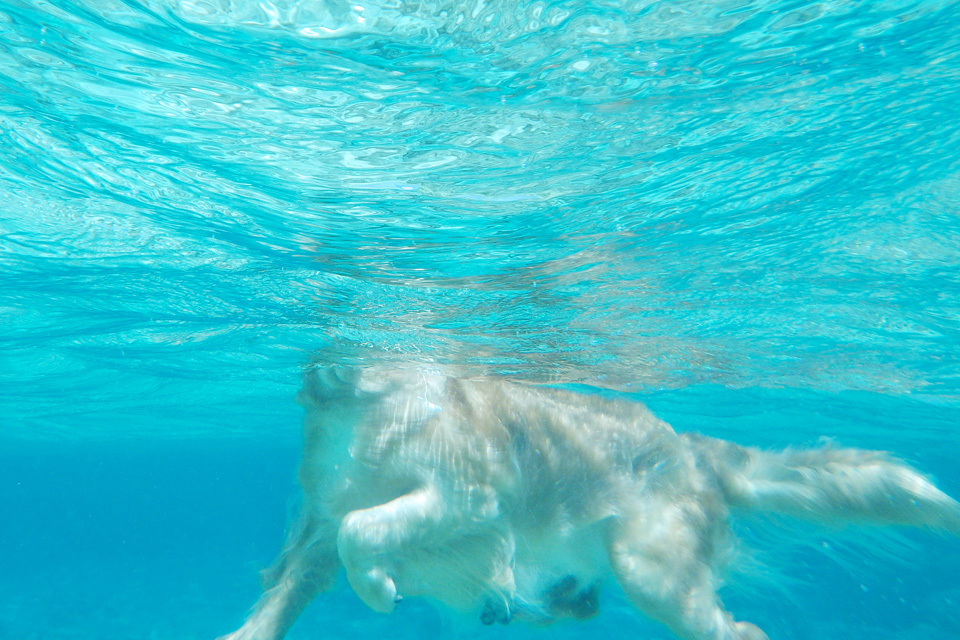 水中,犬かきのようす