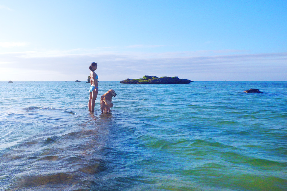 …実は満ち潮で水没している防潮堤の上に二人を立たせたのです。