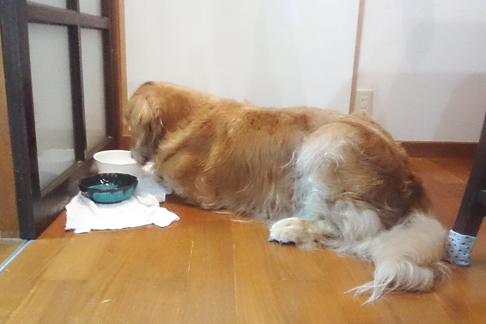なんとウルトラ食いしん坊のタローがごはんを立って食べられません。