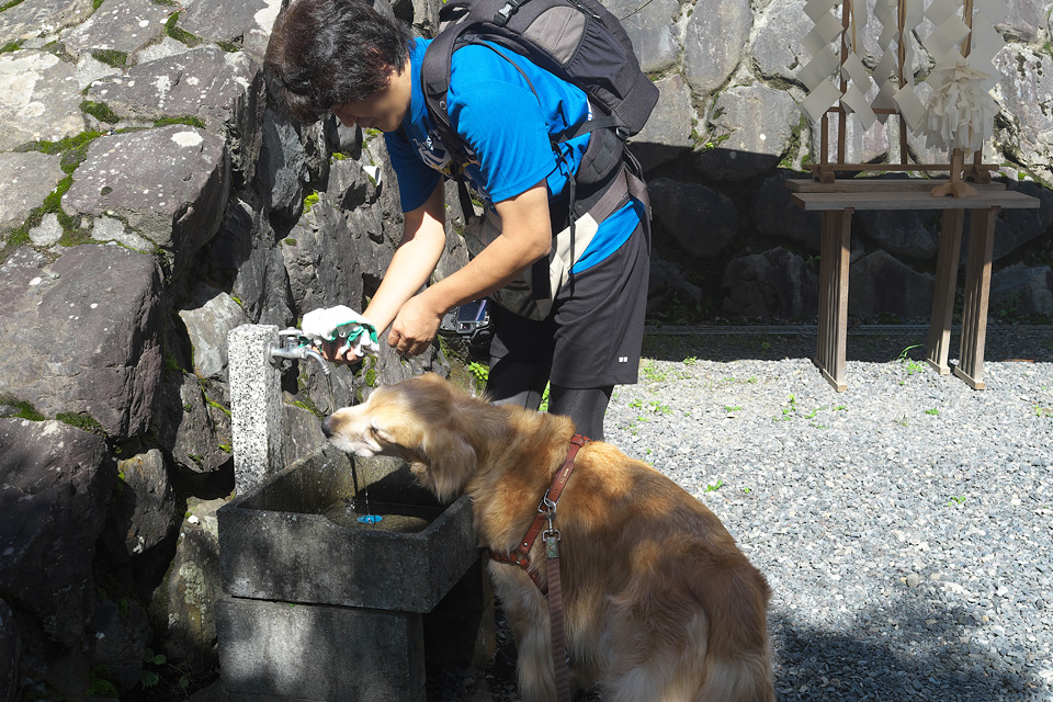 タローも手水をお借りして参拝する間に授与所が開きました。