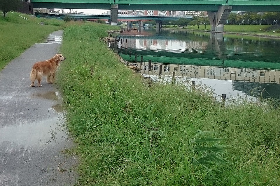 雨の中や泥道を歩かせるとゴールデンの長い毛はさながらモップのように泥水を吸水してしまいます。