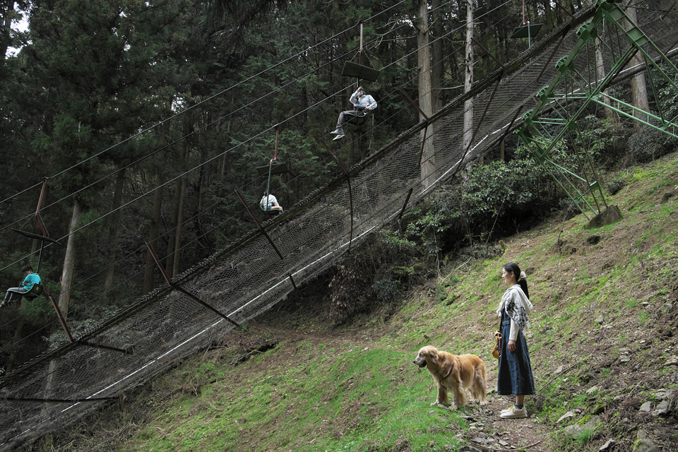 津和野城にアクセスするリフトも当然犬は乗れません。麓からテクテク登ります。