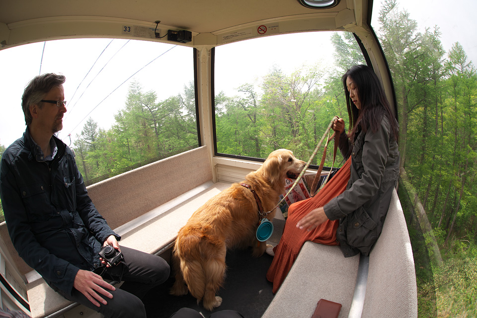 動くゴンドラにうまく飛び乗りました。