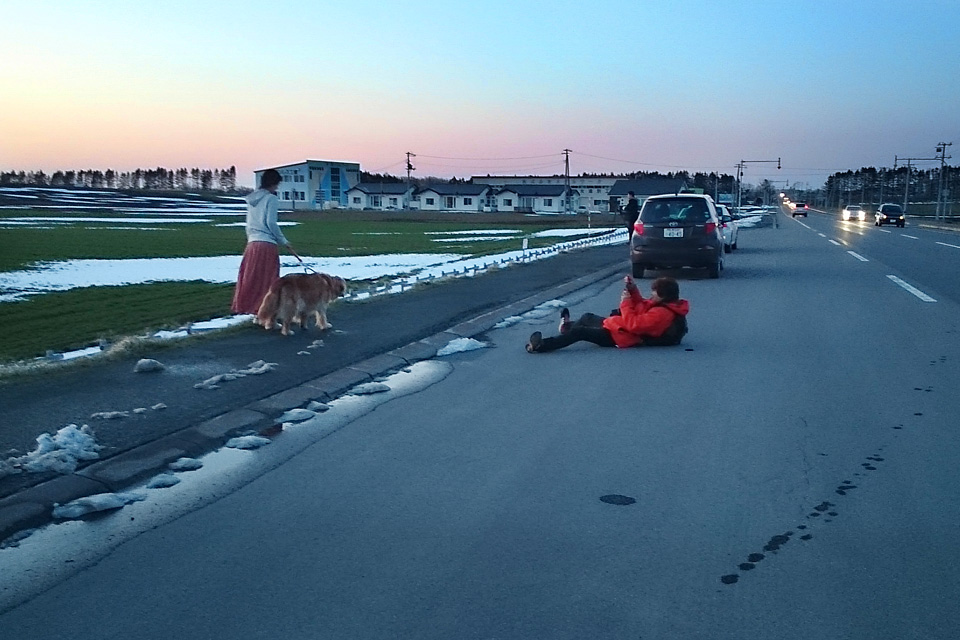 道路に仰向けになって何を撮っているのかと申しますと…(笑)