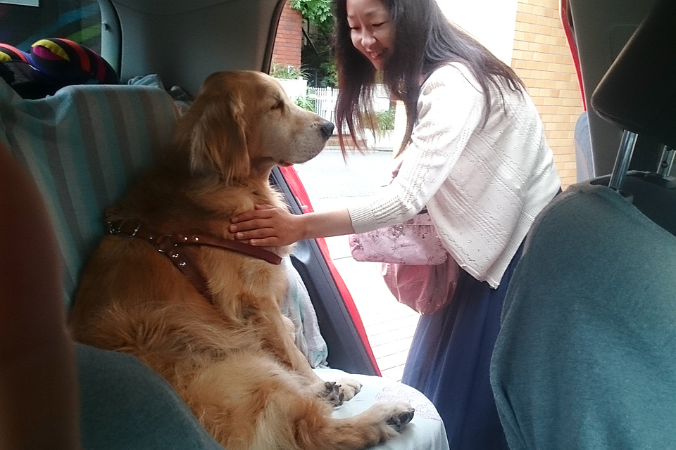 けがをさせないよう車の乗り降りにはハンディリードで介助するようになりましたが心は10才の少年です。