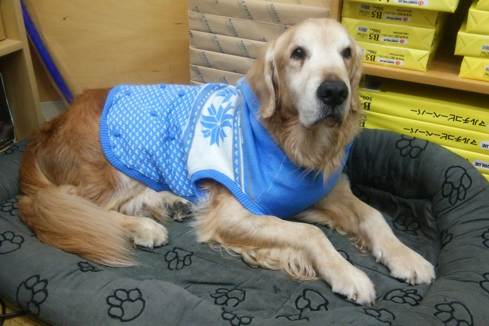 あんまりうれしくないようですが大人しく着てます。