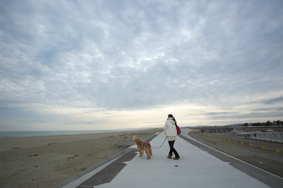 防潮堤です。どこまでも続いています。
