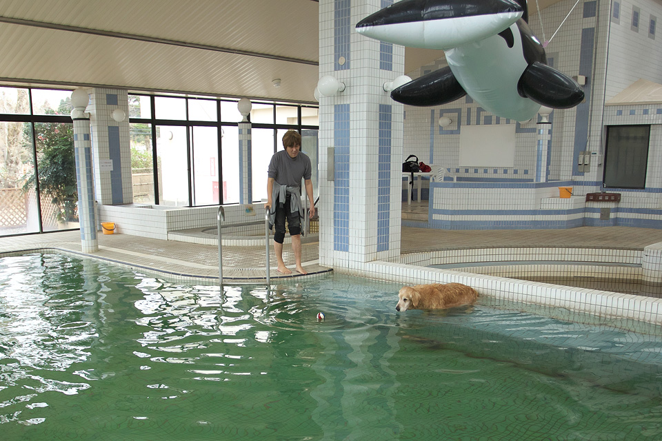 心配そうに見ています。当然溺れたら飛び込む覚悟です。