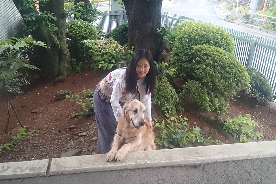病院は犬が入れません。こっそり駐車場の片隅で…。