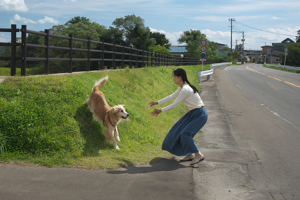 ボクの写真のモデルを務めたあとはしゃいで土手から飛び降りるタロー。