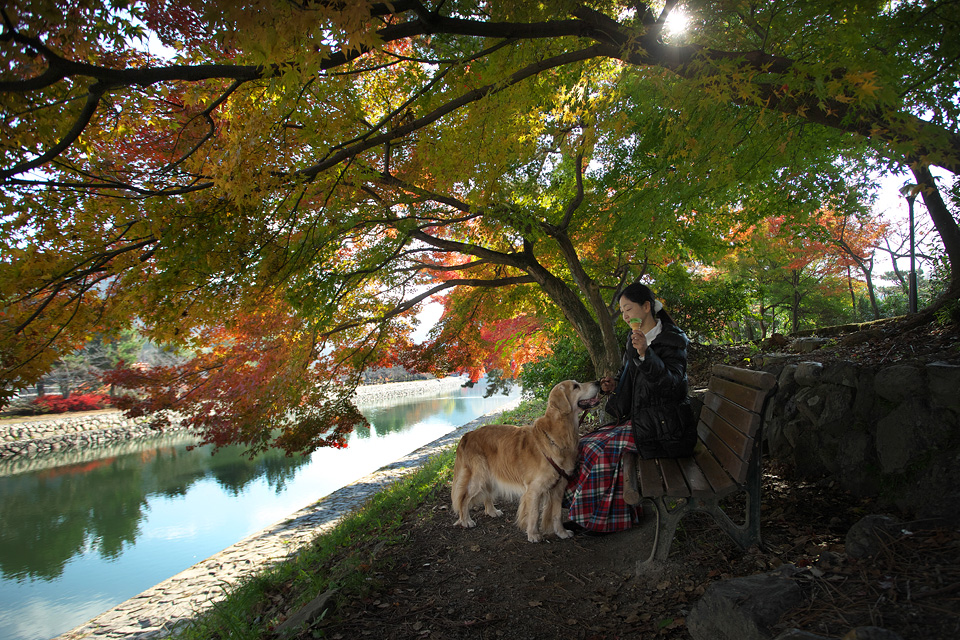 …宇治川のほとり,三人で抹茶ソフトを分ける穏やかな時間。