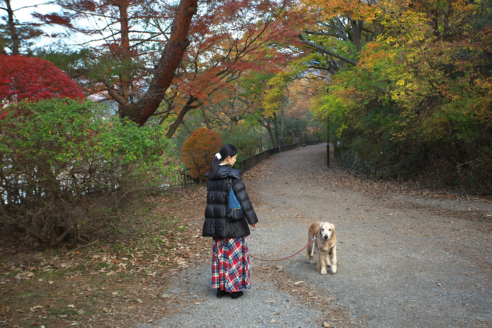 Twitterのお友だち,新京極のふくやさんで昼食のときに教わった京都の紅葉の穴場「宝が池公園」 …タローは池を一周しようとアピールしていますが,ボクの腰の具合ががかんばしくなく断念。 大原越えして琵琶湖に向かいました。