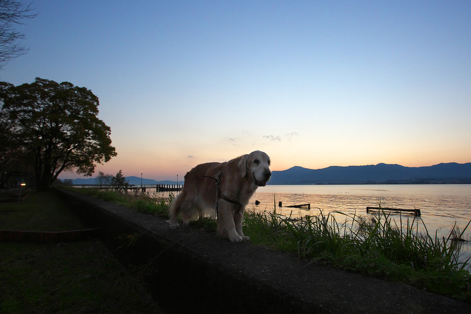夕日をバックにいつものようにモデル立ち…でも立っているのがやっとです。