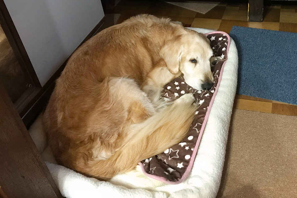 なおみはお医者さんに見せるために,タローが絶え絶えに肩で息をする発作の様子を動画に撮りました。