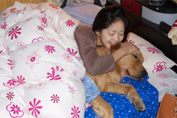 風邪をひいたなおみの湯たんぽとして初ベッド