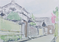 武家屋敷の外れで一枚目。久しぶりなので,屋根の位置関係に気をとられて,線が萎縮気味だ。